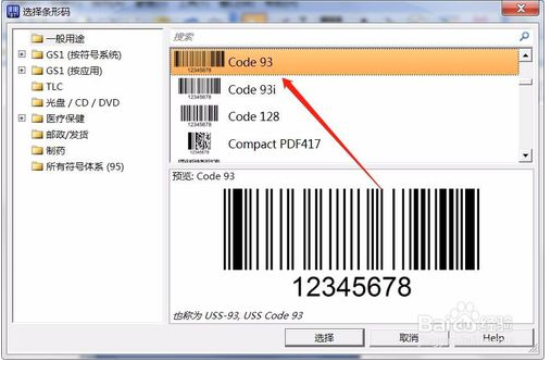 然後呢,宅男天堂污污视频先搞定條碼,首先點擊條碼,注意條碼的編碼方式,一般都是code93、code39、code93i,還有常用的EAN-8、EAN-13,這裏選擇code93。